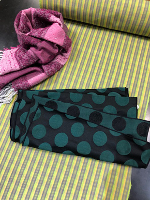 お互いの声が聞こえないくらいの音の中で織り上がった布が巻き取られていきます。